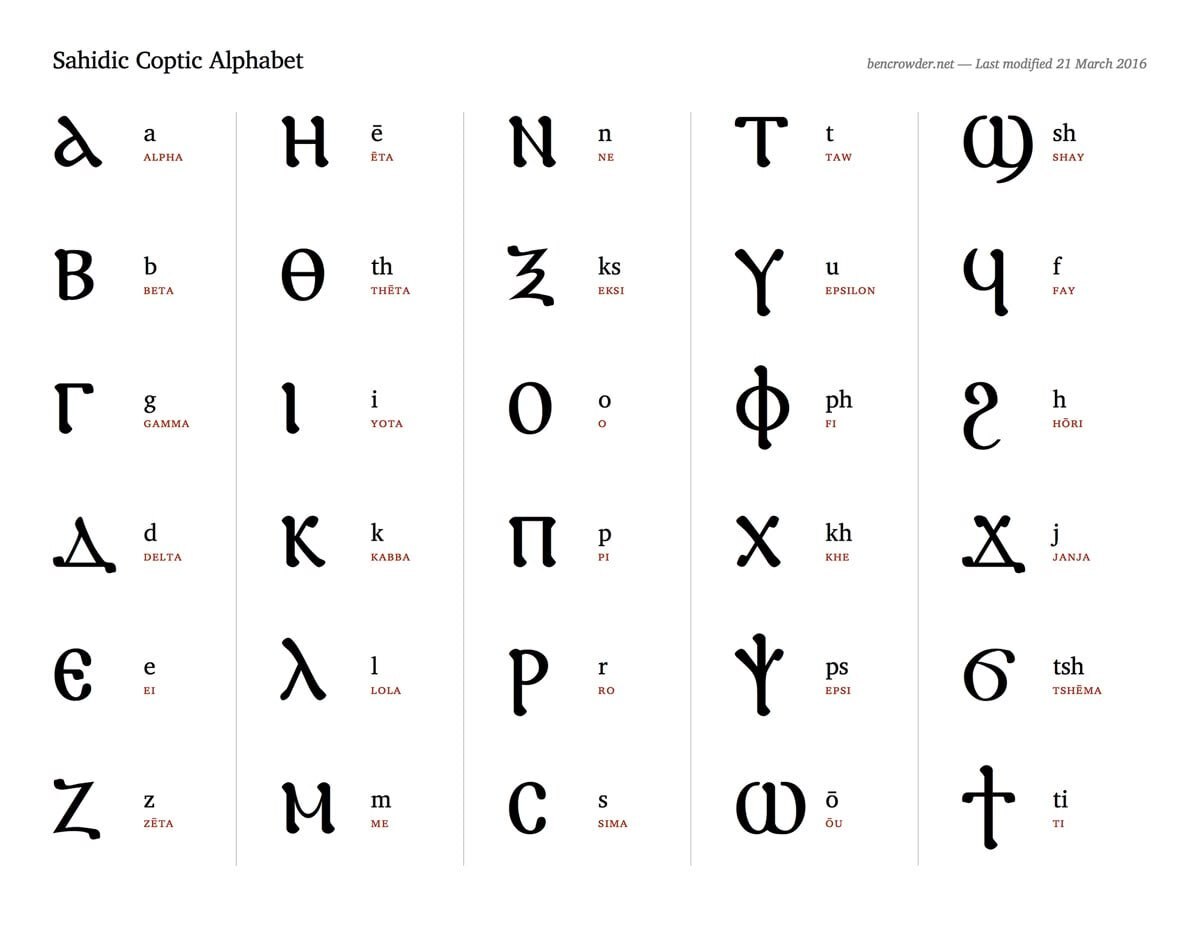 Коптское письмо было одним из источников старонубийской письменности.
