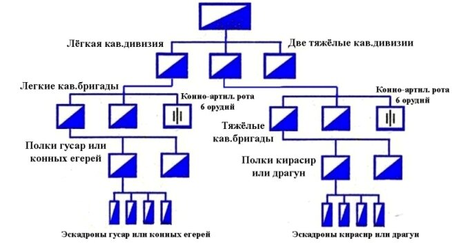 Каждая рота по штату состояла из 600 всадников в составе 100 «копий», разбитых на 10 десяток. На практике рота могла иметь в своём составе от 30 до 110 «копий».